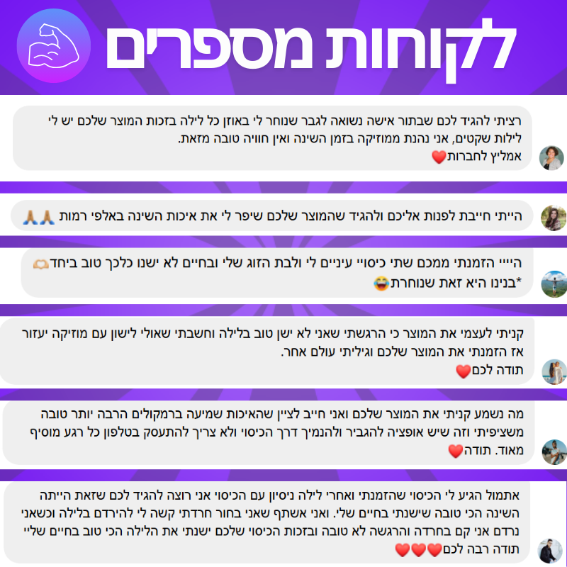 מהלקוחות מדווחים שהרגישו שיפור באיכות השינה כבר מהשימוש הראשון!