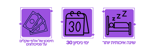 מהלקוחות מדווחים שהרגישו שיפור באיכות השינה כבר מהשימוש הראשון!